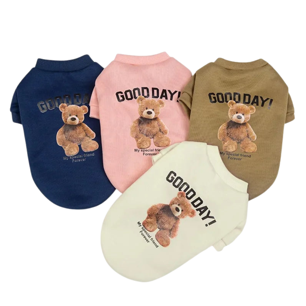 Pull d'hiver adorable motif ours pour chien et chat. Polyester molletonné chaud, tailles XS à XXL. Design craquant pour photos Instagram. Confort et chaleur garantis. Livraison gratuite.